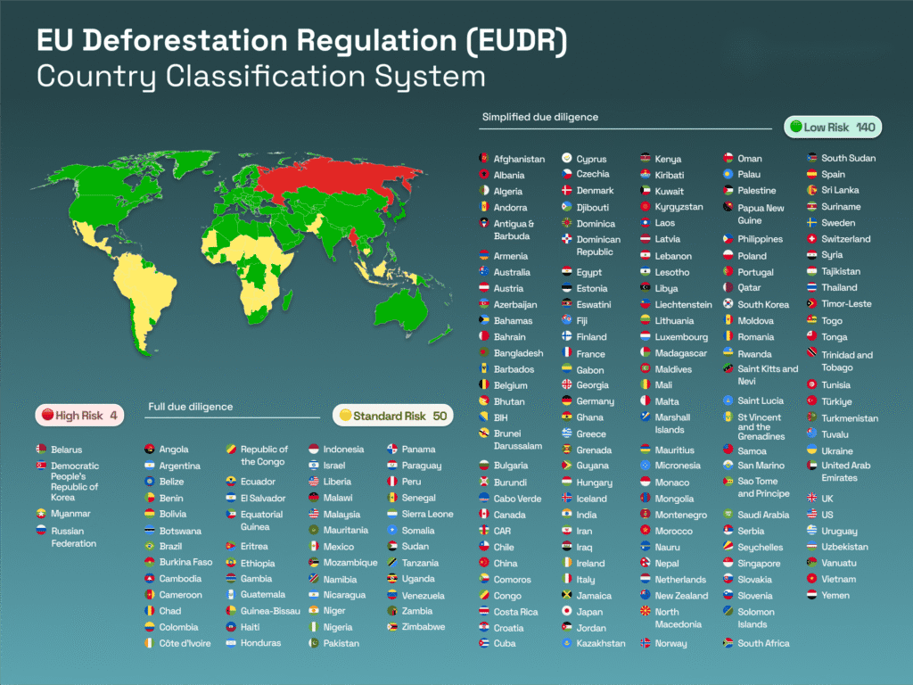 - Low-risk (e.g., China, US, Canada, EU member states): Only basic information collection is required. For importers of Chinese disposable medical protective products, this means 1% annual inspection rate, significantly reducing compliance costs. Basic information includes supplier’s EUDR compliance letter, DDS reference number, and raw material origin certification.