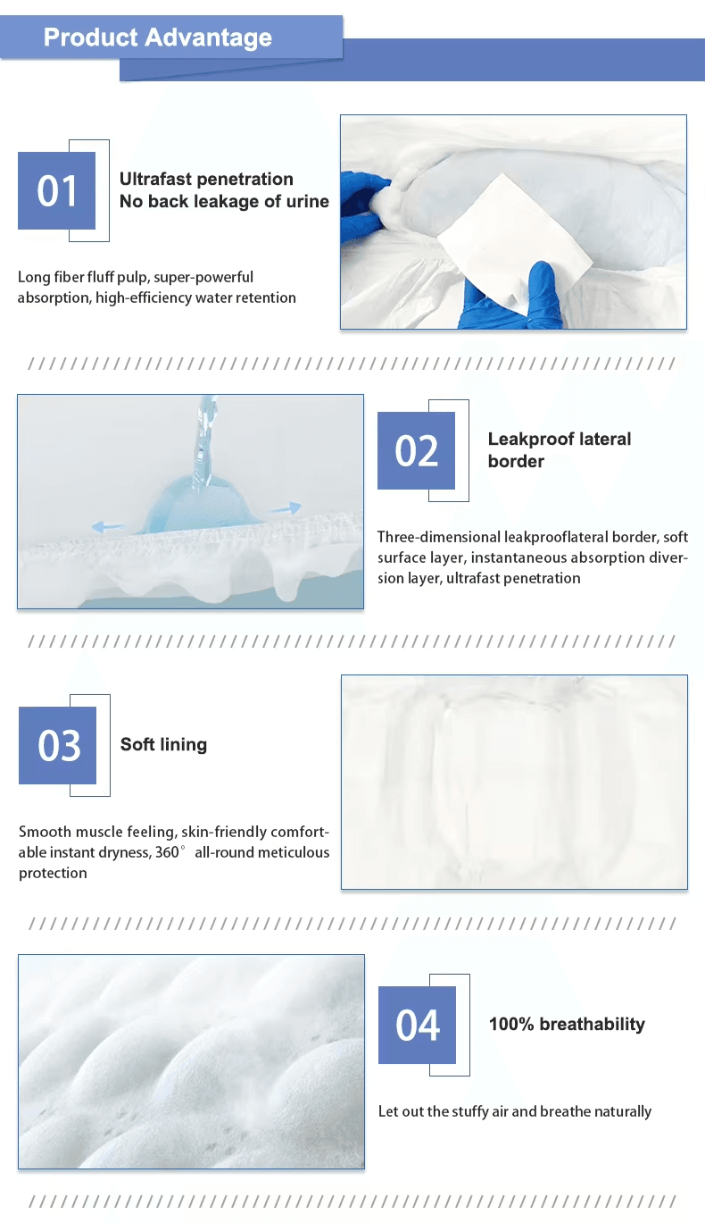 | Material | Non-woven, Tissue, Fluff Pulp, SAP and PE Film |